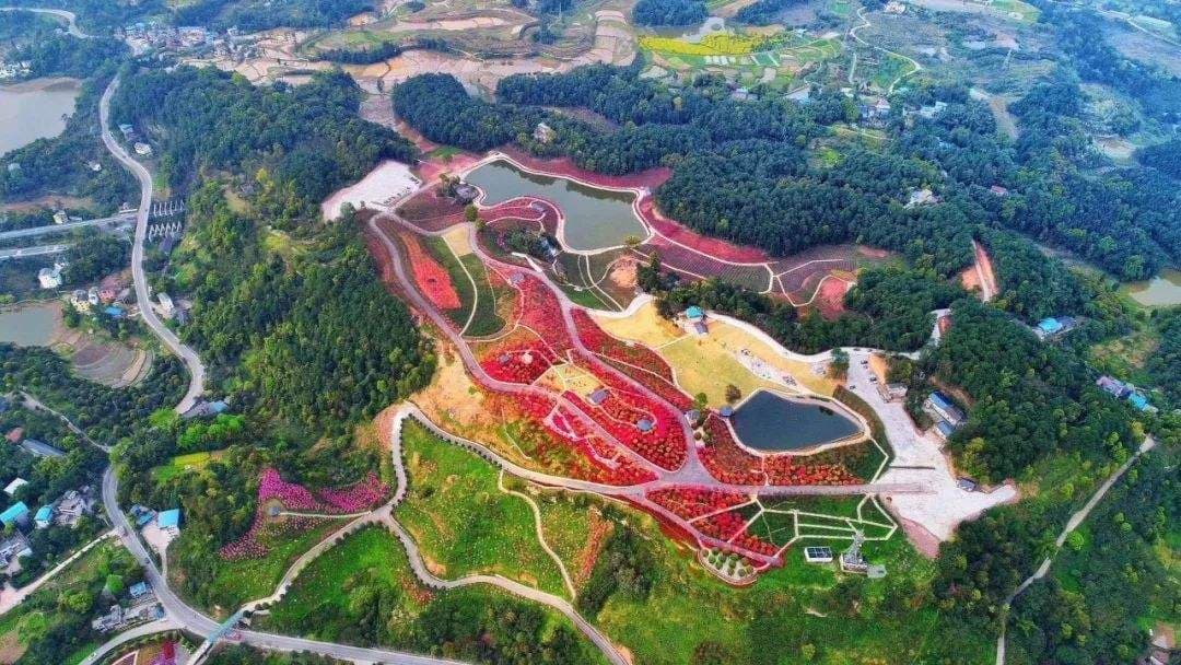 整個園區(qū)從西往東形成人工種植展示區(qū)、湖區(qū)和山地自然生態(tài)山林三個區(qū)域,并根據(jù)當?shù)貧夂?、土壤等條件在園區(qū)內(nèi)種植了紅楓、玫瑰、桃花、櫻花、杜鵑、格?;ā⒂菝廊说榷喾N觀賞類花草樹木。
