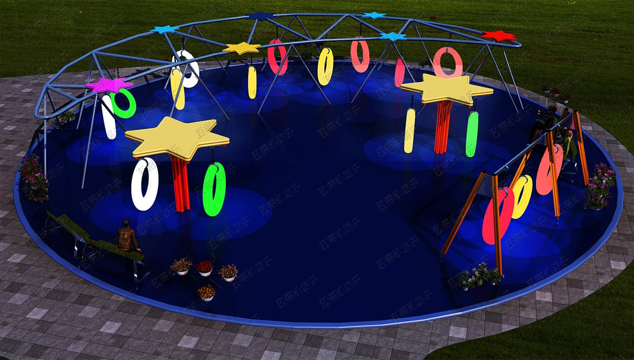 此項(xiàng)目包含:彩虹傘、月光秋千、蝴蝶蹦床、樹枝秋千、敲打樂器、組合秋千、搖籃秋千等產(chǎn)品!