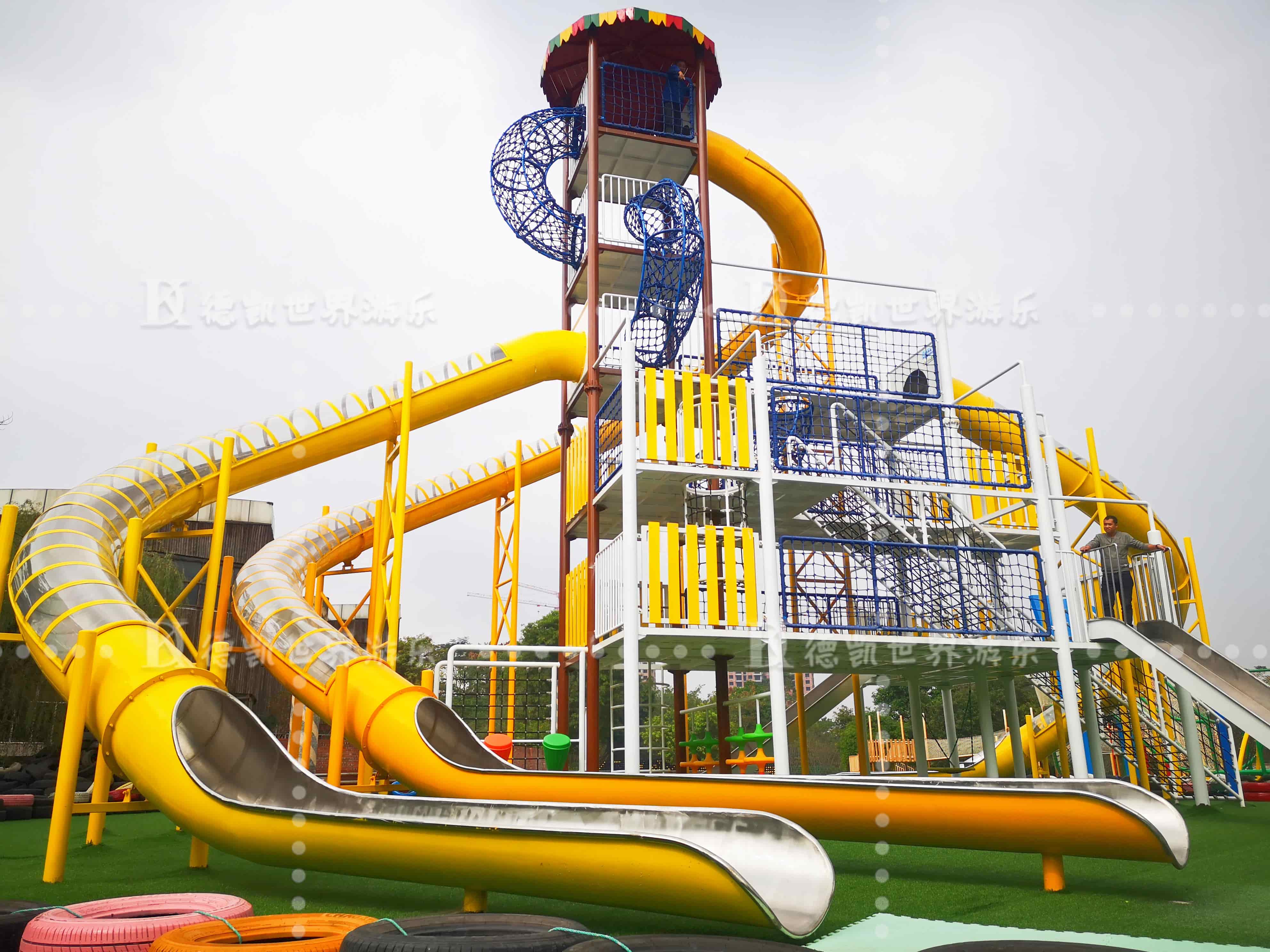 這令人畏懼的主題滑梯塔!滑道有初級、中級、終極高度延伸下來,到達終極高度的滑道需通過高空爬網(wǎng)才能到達,勇敢無畏的小勇士們啊!來挑戰(zhàn)滑梯塔吧!