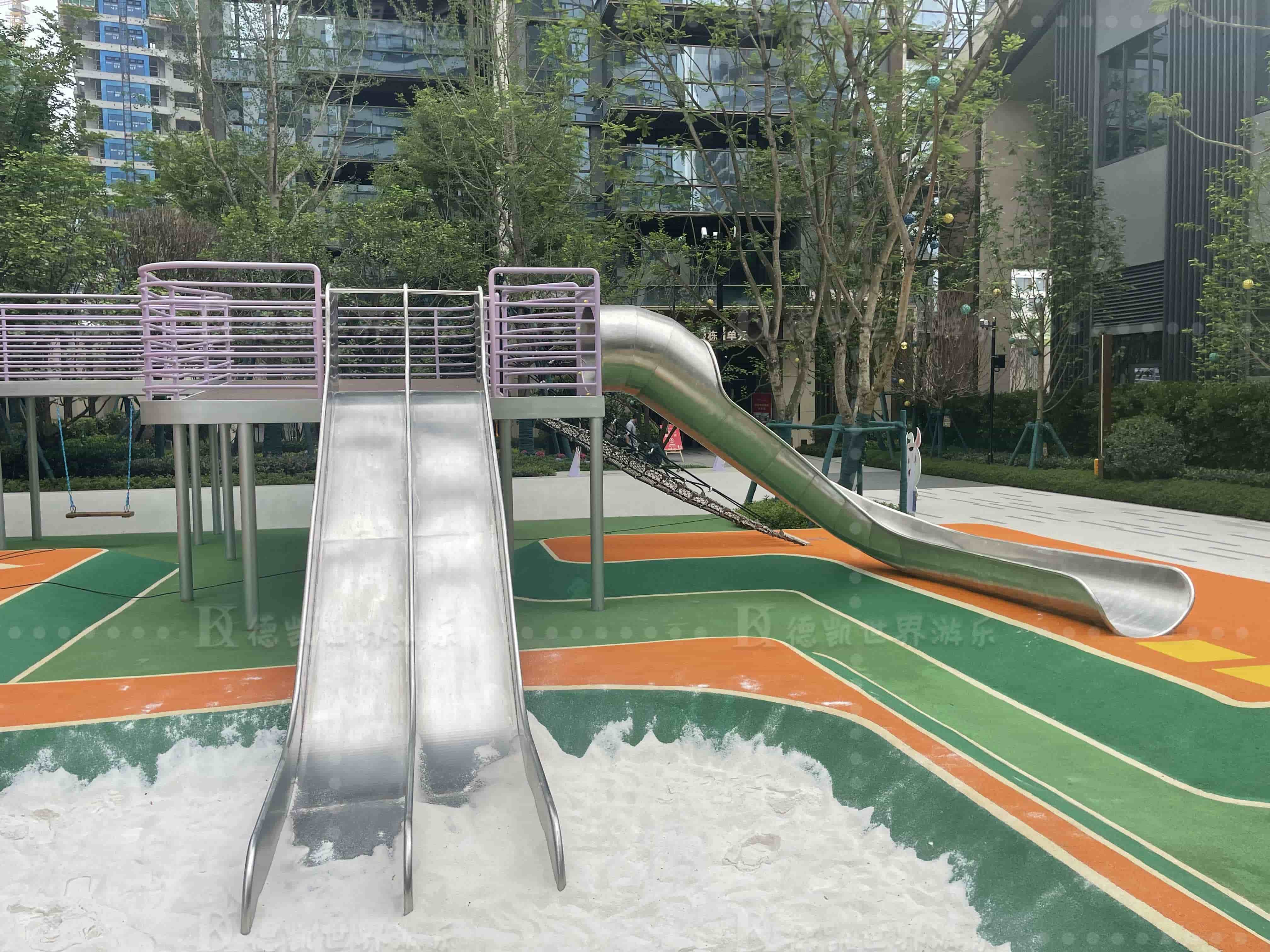 招商時代公園大體量設施當屬多功能廊架,功能包括:滑梯,拓展攀爬網,廊道,旋轉樓梯,秋千等。整個方案從效果圖到樣圖一出得到客戶一致好評。